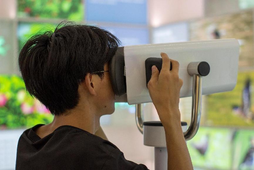 圖為桂利輝在3D投影儀觀察動物。鄒奇供圖