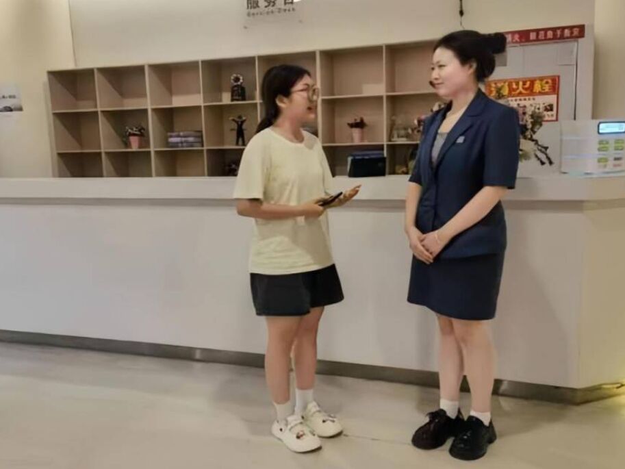 圖為實踐隊員與浴場工作人員交流。中國青年網通訊員 荊玉玲 供圖