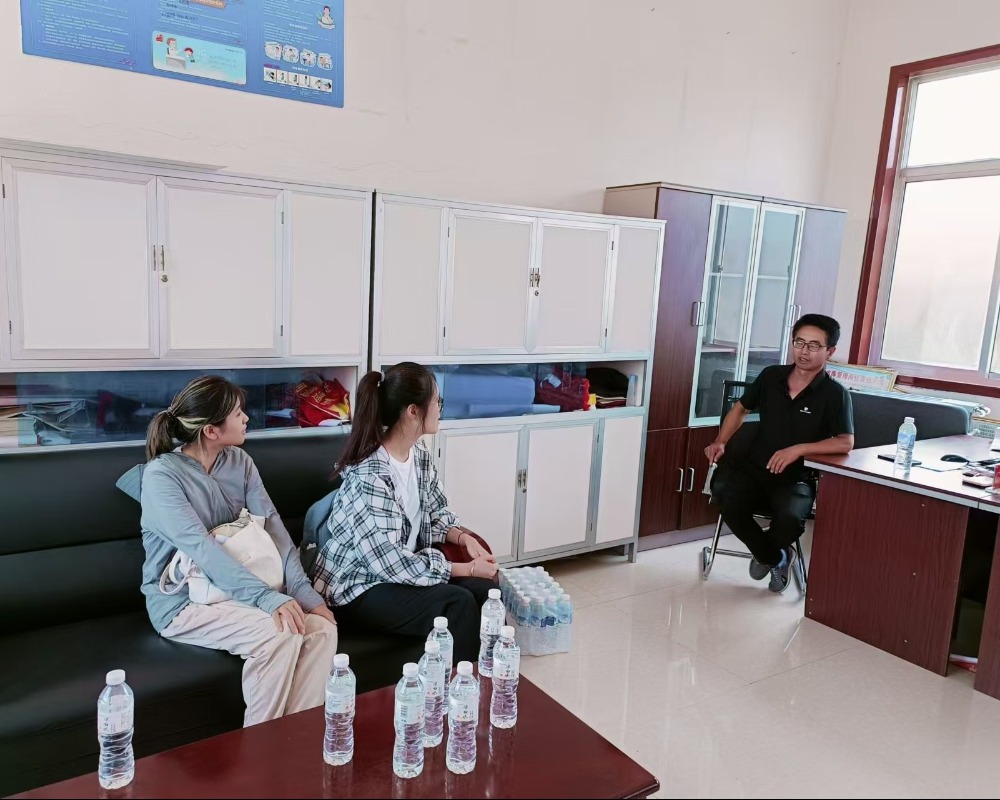 第二站實踐隊前往萊州市郭家店鎮古村進行調研。煙臺大學經濟管理學院2022級農村發展專業研究生,古村第一書記朱泓錦熱情的接待了成員,并于會議室內進行座談會議,簡單介紹古村的具體情況。