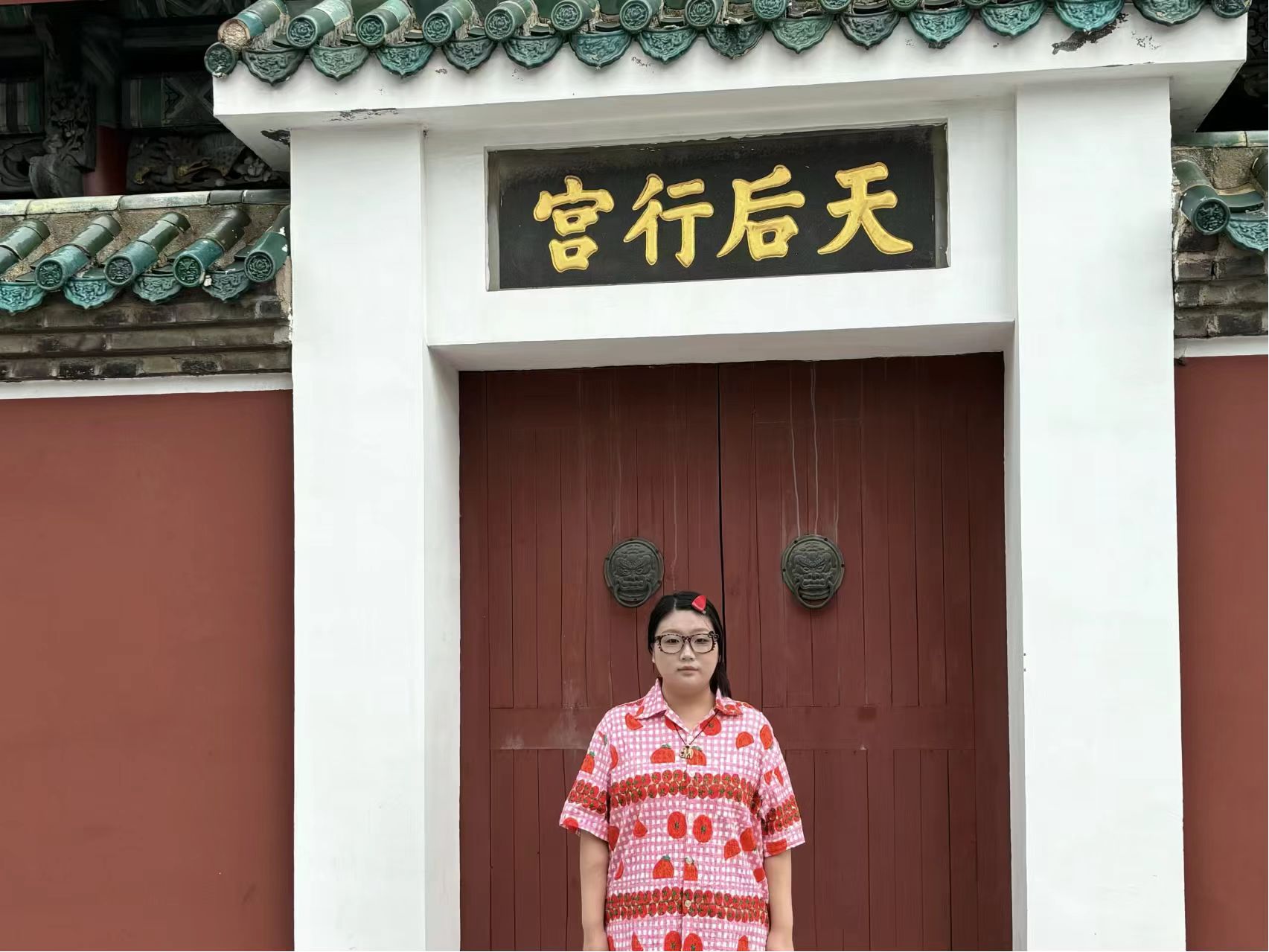 圖為實踐團成員任笑葦在天后行宮前合影。通訊員 任笑葦供圖