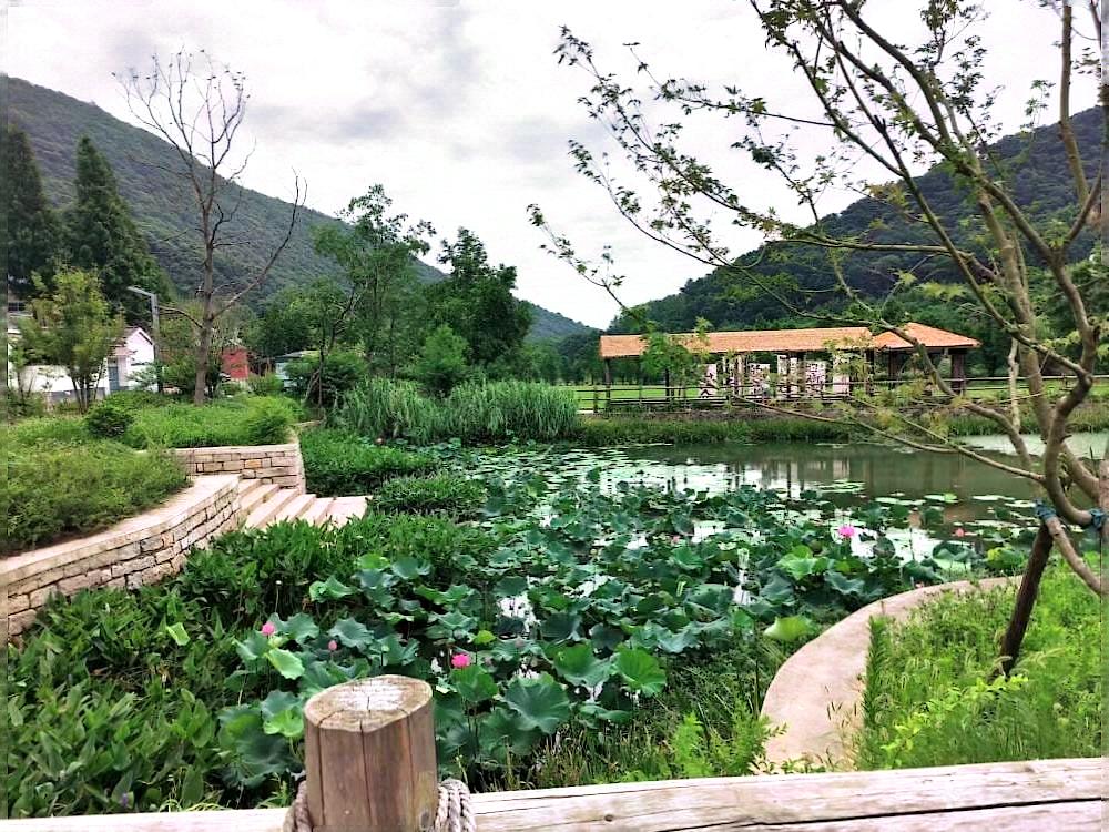 當汽車載著我們來到村子時,我們瞬間就被這里優美的環境吸引,蜿蜒的小路,開滿荷花的池塘,還有各種充滿設計感的咖啡廳,古玩店,演出廳等等,隱隱約約還能聞到一點梔子花的清香,聽負責人姐姐說,現在已經過了梔子花盛開的時期了,一般盛開時期是五六月份左右,據說南京百分之八十的梔子花都產自這個村子,所以梔子花是這里的特產。