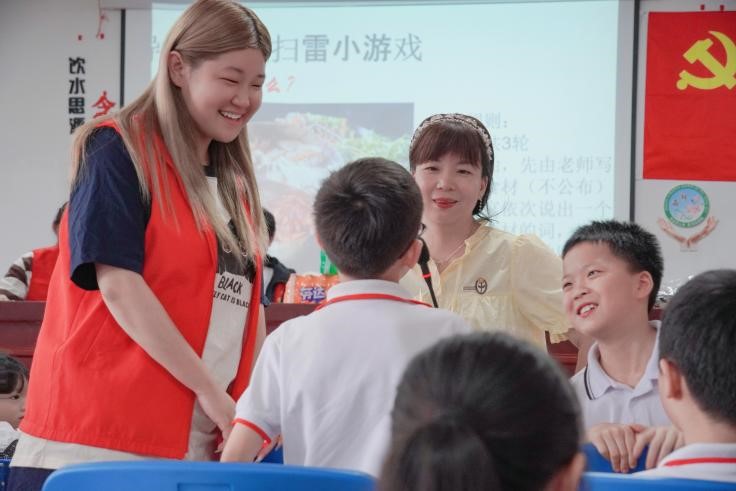 △實踐隊在為孩子們上課(圖為通訊員周加杰攝)
