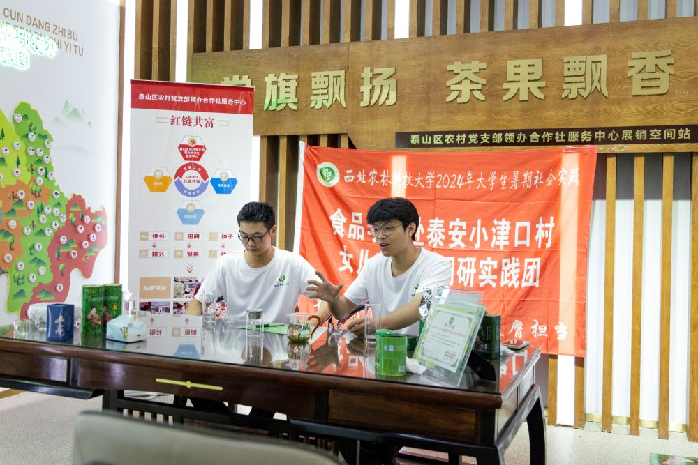 為引導學生厚植愛農情懷,練就興農本領,勇?lián)称沸袠I(yè)責任,西北農林科技大學食品學院赴泰安泰山茶產業(yè)調研實踐團深入深入泰安市岱岳區(qū)小津口村,開展了一場別開生面的泰山茶產業(yè)調研與直播帶貨活動,以實際行動助力當?shù)靥厣r產品走出大山,邁向更廣闊的市場。