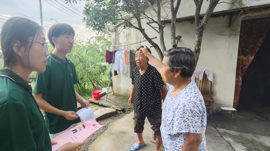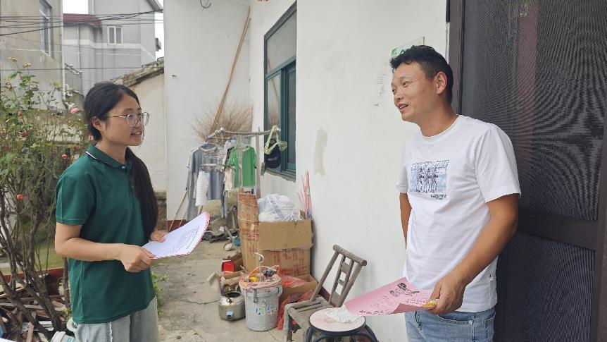 圖為宣講團(tuán)成員對(duì)老年人進(jìn)行宣傳。 毛心茹 攝
