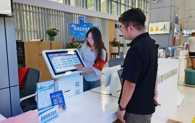 (圖為暑期實踐個人張依涵在宿城區市民服務中心為群眾取號拍攝的活動照片。張依涵供圖)