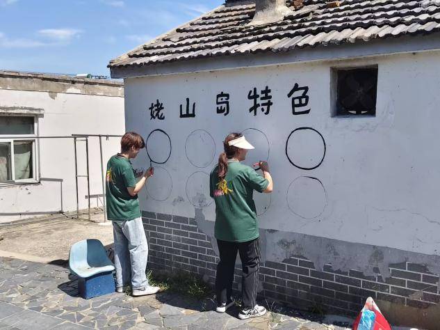 圖為實(shí)踐團(tuán)成員對(duì)姥山島墻體彩繪修復(fù)。通訊員 周燦宇 供圖