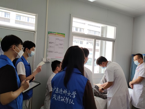 在實地探訪中,實踐隊成員們走進了茂南區的金塘衛生院和公館中心衛生院,與正在那里工作的定向醫學生進行了親切的交流。同時,隊員跟隨優秀醫生李將文的腳步,親身體驗了全科醫生忙碌而充實的一天,從基礎的查體問診到處理常見的甲溝炎手術,每一環節都彰顯著醫學的嚴謹與溫度,每一句詢問都飽含著對患者深切的關懷。李將文醫生以其豐富的實習與基層工作經驗為鑒,向實踐隊成員敞開心扉,就定向醫學生培養的關鍵議題——招生機制的優化、分配考核的公正性、考研路徑的探索、職后培訓的強化以及未來職業發展的多元化方向,進行了全面而深刻的剖析與探討。在這兩天的見習中,筑夢隊的成員們深刻感受到了基層醫療工作的艱辛與不易,也親眼見證了醫生們如何用專業的技能和無私的愛心守護著鄉親們的健康。沿著前輩的足跡,筑夢隊隊員不僅學到了醫學知識,更體會到了“醫者仁心”的深刻內涵,這將激勵隊員們在未來的道路上更加堅定地走下去。