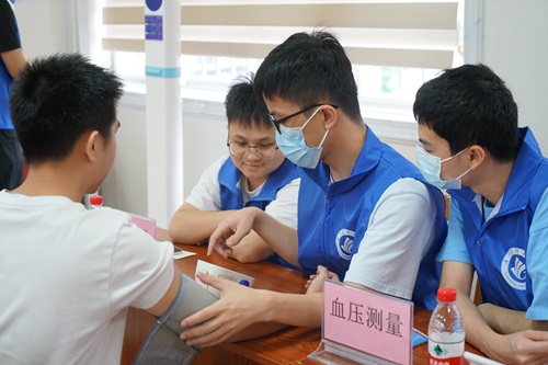 圖為隊員在為社區居民測量血壓,并宣傳預防高血壓知識(邱紹君 供圖)