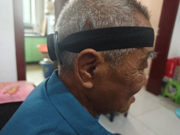 在對失能老人護理過程中的難題有了深入了解,并參觀了養老院的護理流程之后,團隊成員向老人家屬及護理人員介紹了團隊研發的腦機接口產品。在充分征得家屬同意的前提下,團隊成員為老人佩戴了相關設備,并進行了現場測試。測試過程中,團隊密切關注老人的反應,評估腦機接口技術在提升失能老人護理交流與生活質量方面的潛在作用。