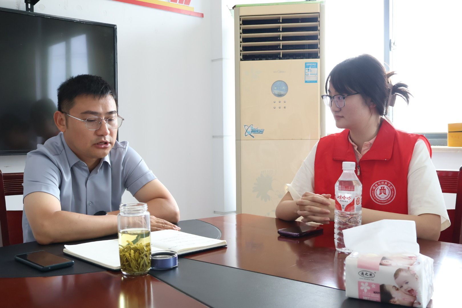 圖為團隊成員對楊書記進行采訪 王詩田攝 |