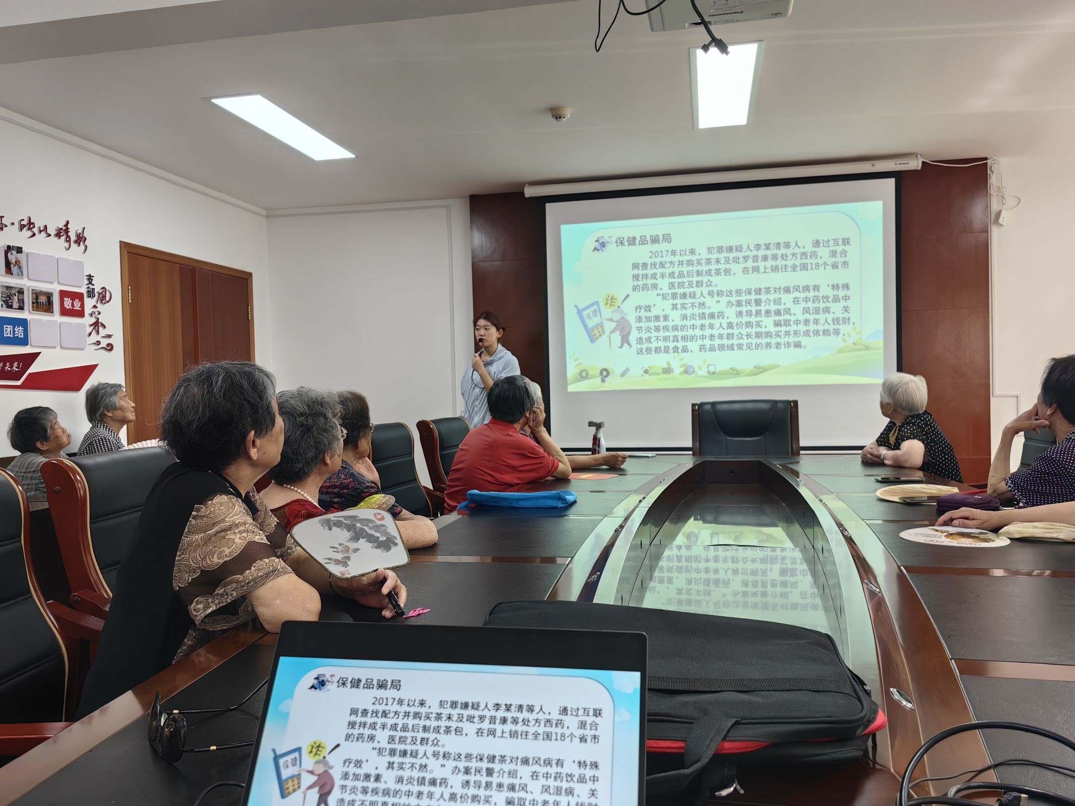 同學們通過真實案例分析,向老人們詳細介紹了常見的詐騙手段,如電話詐騙、網絡詐騙、保健品詐騙等。他們用通俗易懂的語言,深入淺出地講解了詐騙分子的作案手法和防范要點,提醒老人們要保持警惕,不要輕易相信陌生人的話,遇到可疑情況要及時與家人或相關部門聯系。為了讓老人們更好地理解和記憶,實踐團成員們還制作了精美的反詐宣傳手冊,分發給每一位老人,并耐心地為他們進行解讀。