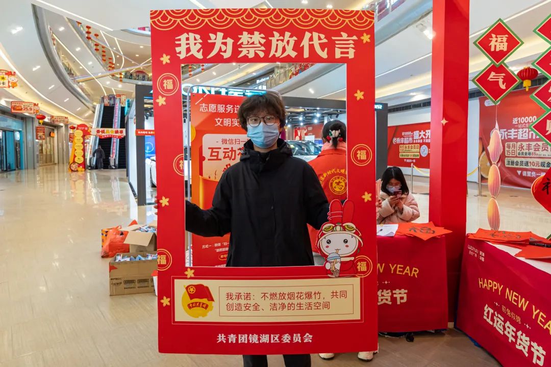 為號召廣大市民一起參與禁燃禁放,共同守護碧水藍天,由共青團鏡湖區委、鏡湖區文明辦主辦的“禁燃禁放護藍天 迎春送福添年味”主題活動于1月10日在吾悅廣場舉行。活動召集返鄉大學生現場手寫福字,邀請市民通過朋友圈轉發禁放倡議書、合照等方式宣傳禁燃禁放,號召廣大市民一起參與禁燃禁放,共同守護碧水藍天。活動現場,家長們帶著孩子大手握住小手一起寫“福”字,夫妻、母子、朋友們一起合照,“皮卡丘”們也參入了“代言”的隊伍中來,都為完成這場禁燃禁放“接力賽”貢獻出了自己的力量。此次活動是鏡湖區大學生“返家鄉”社會實踐活動系列之一,后續將陸續開展環境保護、文化傳承、主題交流、參觀宣講等系列活動,旨在引導蕪湖籍大學生通過返鄉實踐更好地了解國情、感知社會、熱愛家鄉、服務群眾,充分感受家鄉的巨大變化,用青春力量助力城市高質量發展。