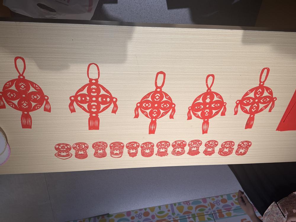 然后,鐘老師親自指導(dǎo)實(shí)踐團(tuán)成員們體驗(yàn)剪紙創(chuàng)作。剪刀在老師手上靈活轉(zhuǎn)動(dòng),彩紙上下翻轉(zhuǎn)了幾下,短短幾分鐘,一個(gè)栩栩如生的大石榴躍然紙上。在老師的指導(dǎo)下,每一位成員都拿起了剪刀和紅紙,從最基礎(chǔ)的折紙開(kāi)始,一步步嘗試剪出石榴花開(kāi)。即使每個(gè)人中間都有過(guò)失敗,但最后每個(gè)人都擁有了屬于自己的石榴花開(kāi)。其中一位實(shí)踐團(tuán)成員感慨道:“我成功后,那份成就感就油然而生。原來(lái),剪紙不僅是技藝的傳承,更是心靈的滋養(yǎng)。”