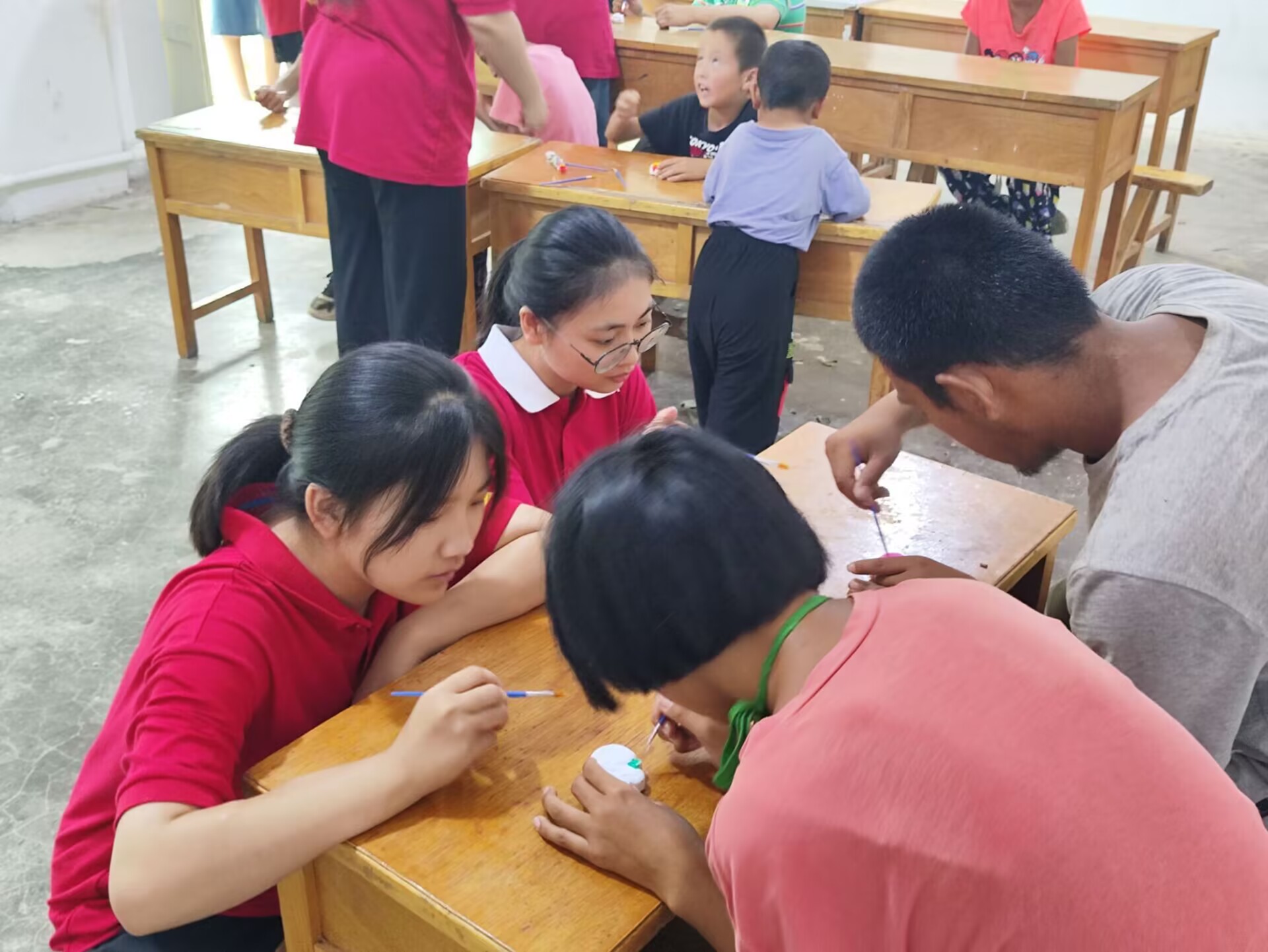圖二:實(shí)踐團(tuán)成員和孩子們一起圖石膏娃娃為了讓殘疾兒童更好地認(rèn)識(shí)自己,實(shí)踐團(tuán)舉辦了“心靈故事會(huì)”。在這個(gè)平臺(tái)上,孩子們勇敢地分享了自己的成長(zhǎng)故事和心路歷程。這些故事不僅增強(qiáng)了他們的自我認(rèn)同感,也讓在場(chǎng)的每一個(gè)人感受到了他們的堅(jiān)韌和勇氣。角色扮演與情感體驗(yàn)活動(dòng)是此次活動(dòng)的又一亮點(diǎn)。通過(guò)扮演不同的角色,殘疾兒童有機(jī)會(huì)體驗(yàn)不同的情感和生活情境,這有助于他們更好地理解他人,增強(qiáng)同理心,同時(shí)也培養(yǎng)了他們的社交能力和適應(yīng)能力。