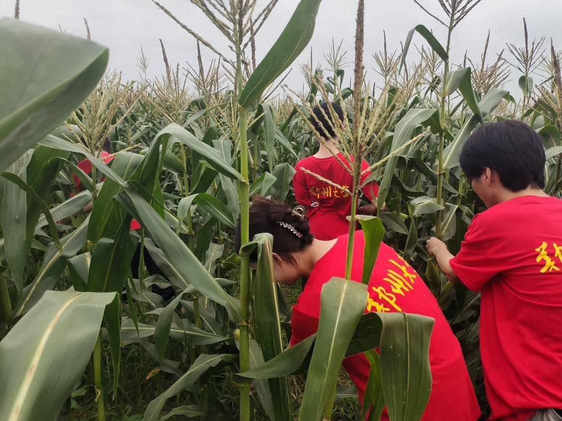 團隊成員在鮮食玉米種植基地幫助種植戶采摘玉米 通訊員 周姝怡 攝