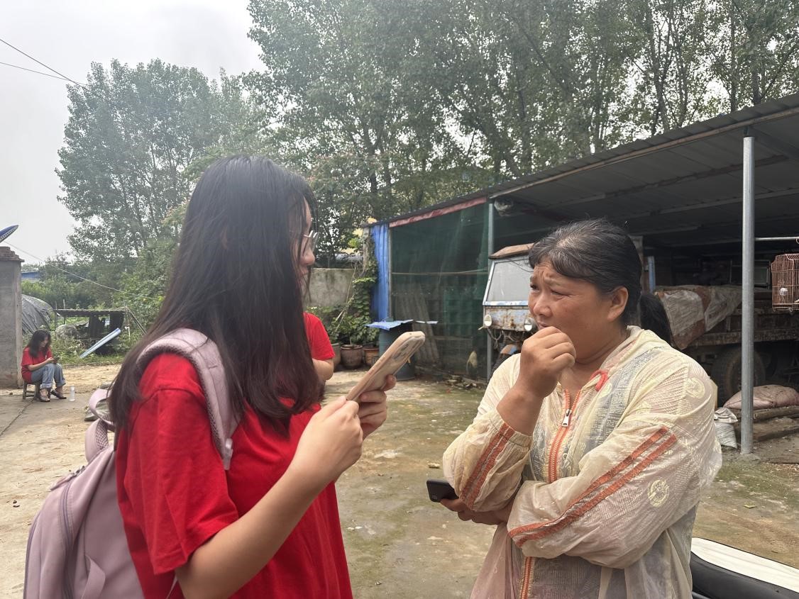 團隊成員楊蕊嘉在種植戶家中采訪鮮食玉米種植戶呂賢娜,深入學習鮮食玉米產業發展 通訊員 潘曉晨攝