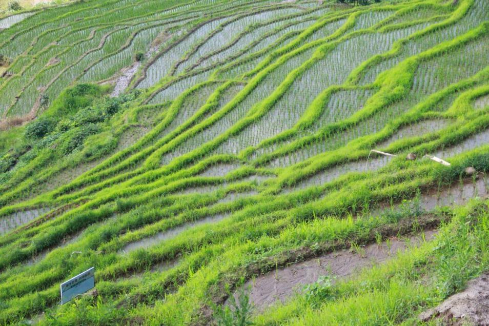 數十年前,湖洋梯田曾面臨無人耕種的困境,但在村委會的帶領下,村民們逐漸意識到這片土地的價值,紛紛動員起來,親自參與耕作,讓梯田重新煥發生機。然而在梯田發展過程中,遇到了污水治理的難題,由于地處污水源頭,加之污水分布廣等原因,成了困擾村民和阻撓梯田開墾的主要因素。在采訪過程中,上洪村黨總支書記唐育根提到:“我們爭取在鄉村振興的浪潮中,在梯田的進一步整改中,解決掉污水這個老大難問題。”由此可見,村民們不僅將梯田視為生存的根基,更將其視為鄉村振興的希望所在。
