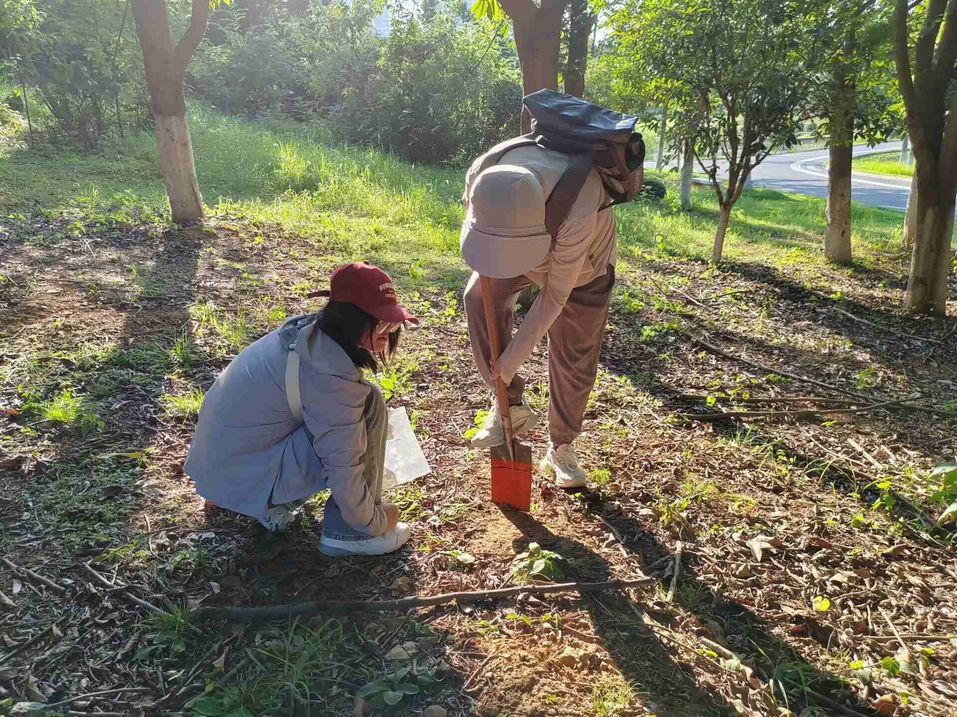 實踐團隊成員崔曼玉和劉鈺正在采集土樣 沈曼攝