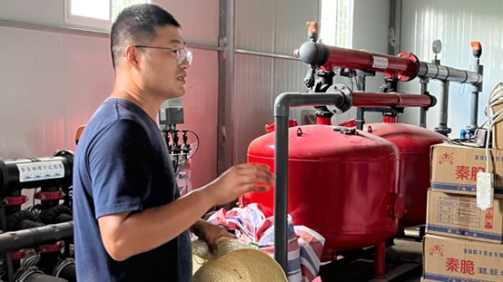 示范基地共計種植蘋果135畝,在果園內采用矮化密植、嫁接果苗、海棠授粉、鋪設草甸、水肥一體化、防雹減災、機械作業等高效栽培方式,保障蘋果結果快、品質高的同時,大大降低生產成本。到了蘋果生長時節,地上部分的草被粉碎成蘋果生長的天然養料,而地下的草根又可再生出新的草甸,循環往復,構建綠色生態;水肥一體化是通過機器實時監測每棵蘋果樹土壤環境和養分含量狀況,采用滴灌控制水分、養分定時定量供給;防雹減災是通過架設防雹網進行冰雹預防;而機械作業更是有講究,基地根據每兩排蘋果樹間距,生長最長枝干的長度等因素綜合購買機器,保證機器作業時不會對蘋果造成破壞。早在我校建立的過程中,就提出了“未建系組,先建場站”,只有走出課堂,參與實踐,才能切身體會科研技術對生產生活的影響,才能最直觀地感受到中國在農業強國方面所取得的偉大成就。通過此次實踐互動,團隊成員紛紛表示到作為西農學子,將始終堅持以強農興農為己任,恪守 “誠、樸、勇、毅”的校訓,承遠古農神后稷之志,積極參與各類下鄉活動、社會實踐和鄉村調研,聆聽他們的心聲,明白他們真正的需求,主動肩負起興農報國的使命,自覺將個人理想融入國家和民族偉大事業的發展當中。