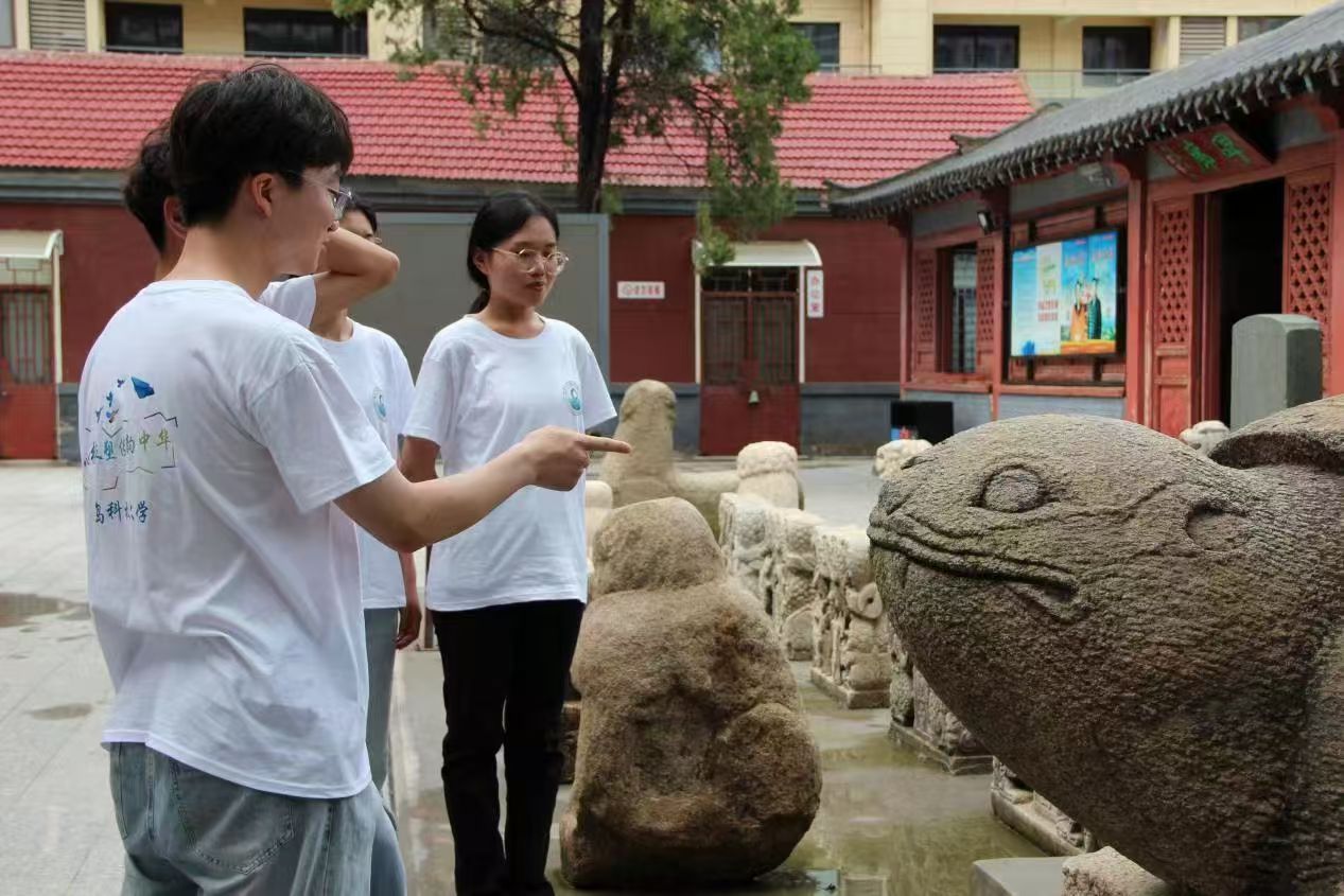 一踏入博物館,一棵漢武帝東巡時(shí)親手所植的銀杏樹格外引人注目。雙株連體,枝繁葉茂,宛如歷史的見證者,靜靜地訴說著千年的故事。館內(nèi)的石碑林立,每一石每一刻,都記錄著平度的歷史篇章實(shí)踐團(tuán)成員便被一股濃厚的歷史氣息所包圍。館內(nèi)豐富的歷史文物、獨(dú)特的民俗風(fēng)情和珍貴的自然地質(zhì)藏品,共同展現(xiàn)了平度的歷史底蘊(yùn)。這座城市的悠久歷史,從膠東文化的根脈、岳石文化的源頭,到東萊文明的搖籃,再到即墨故城遺址、田單火牛陣的傳奇故事,以及魏碑書法文化的發(fā)祥地,每一處都是歷史的見證,每一件文物都是時(shí)間的印記。