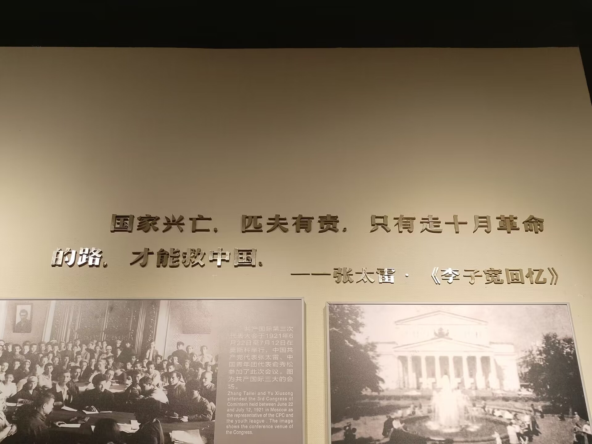 責無旁貸地革命重擔在當時密不透光的社會里,有多少人每天為簡單的生存殫精竭慮,沒人知道意外和明天哪一個先來,百姓苦于生計,國家更是處處碰壁,就是在這個地域般的地界,一道驚雷墜落,劈開一道裂縫,讓新革命的光滲透進舊社會,他是如此的有責任感,革命先烈的崇高精神和偉大民族情懷是我學到的第二課。“國家興亡,匹夫有責。”這句話幾乎是深深刻在每一位中華兒女的骨頭里,但現在卻鮮有人真正把如此精神與實踐相結合了,在科技快速發達的今天,人們去到一個城市不再會關注這個城市有沒有紅色古跡,有沒有重大革命進程,這些往往是機緣巧合下才能被偶爾得知的,我們去的當天,紀念館中只有工作人員,我們心中都不禁感嘆,如果沒有這次暑期實踐,我們也許并不會主動走進這一方天地,更沒有機會了解這么一位傳奇人物,就當我們做好準備要將這次的歷史回響帶回校園時,我們來到了紀念館的二樓,這時,我們才發現,也有另一群人也來到了這里,他們衣著正式,還有專業的講解員,講解員的聲音陣陣入耳,我們這才發現,這一道驚雷震出的是一道又一道的歷史回響,他們在前面,我們緊跟身后,這不就是精神傳遞嘛,老將不死,星火相傳,相信會有一群有一群人來到這里,再把這一歷史回響傳到遠方再遠方的未來,讓張太雷精神永不停歇。