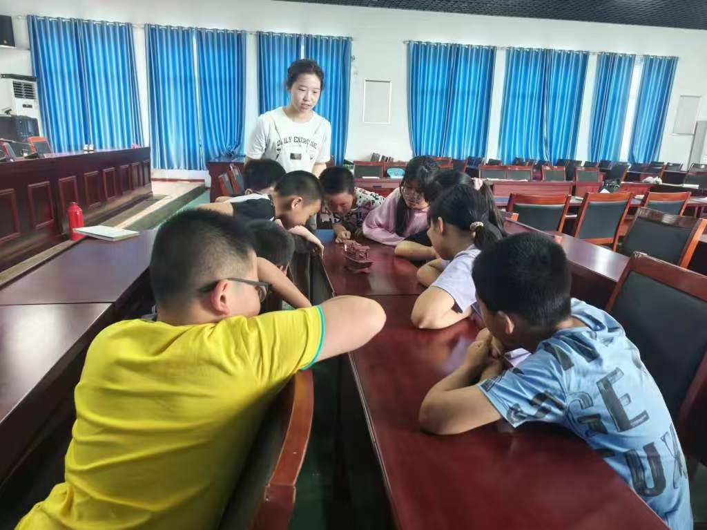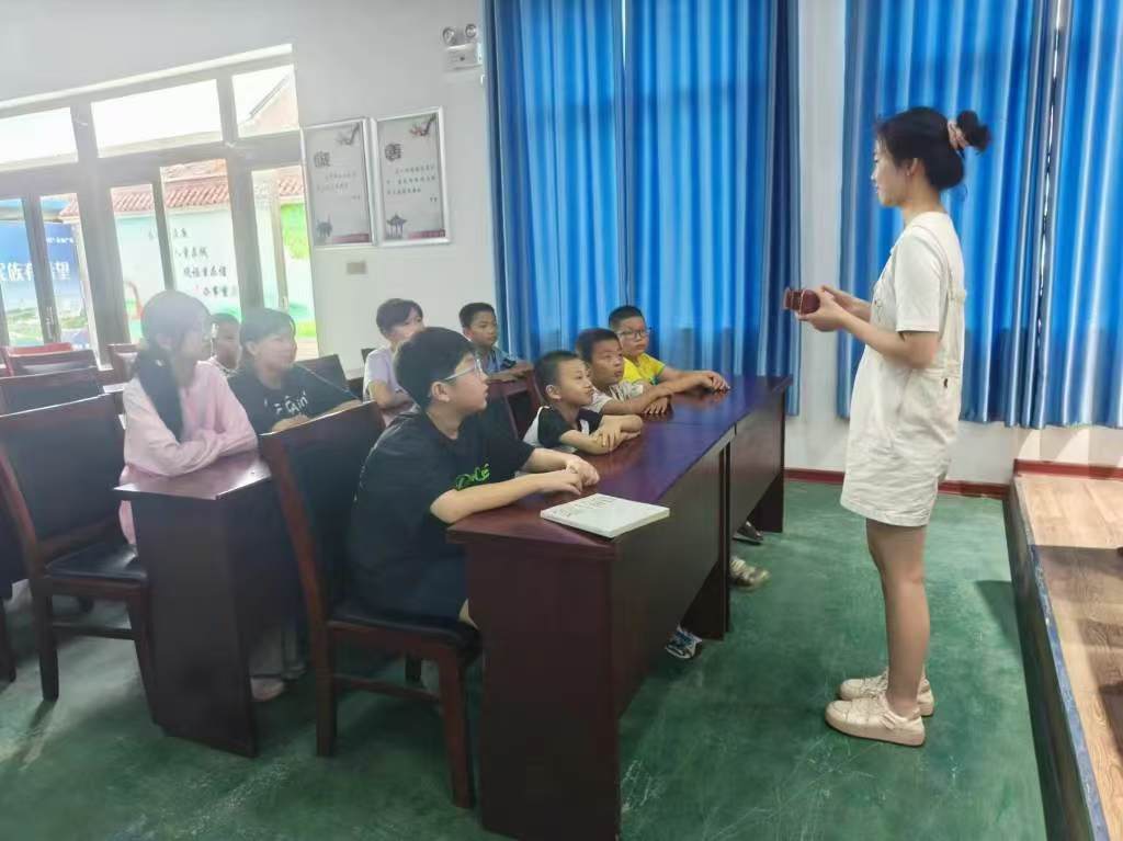 就如何幫助宣傳團隊學習到的非遺造船技藝知識,邵陽婷經過思考后決定在雙聯村黨群服務中心為村內的留守兒童開展一節特殊的非遺課堂。課堂開始之際,服務中心的指導老師和同學們都表示了熱烈的歡迎。邵陽婷首先就“什么是非遺”向同學們發問,同學們都積極回答,表達了自己對于非遺的理解。
