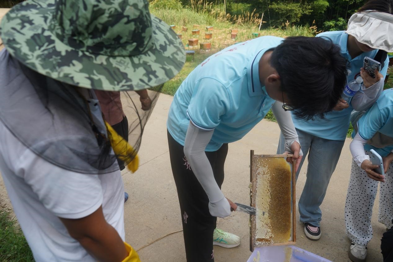 圖為實踐隊員體驗割蜜。 楊雨萱 供圖