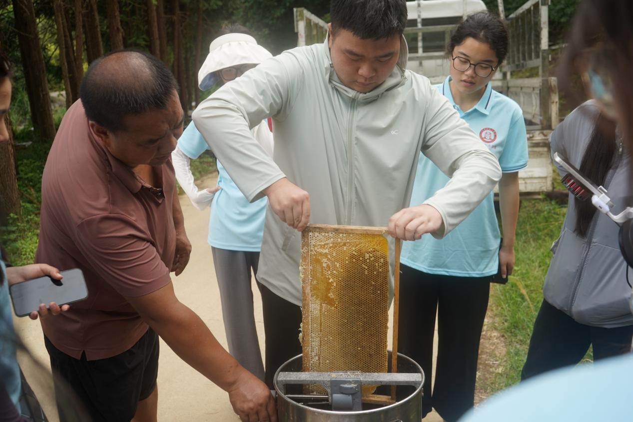 圖為實踐隊員體驗搖蜜。 楊雨萱 供圖