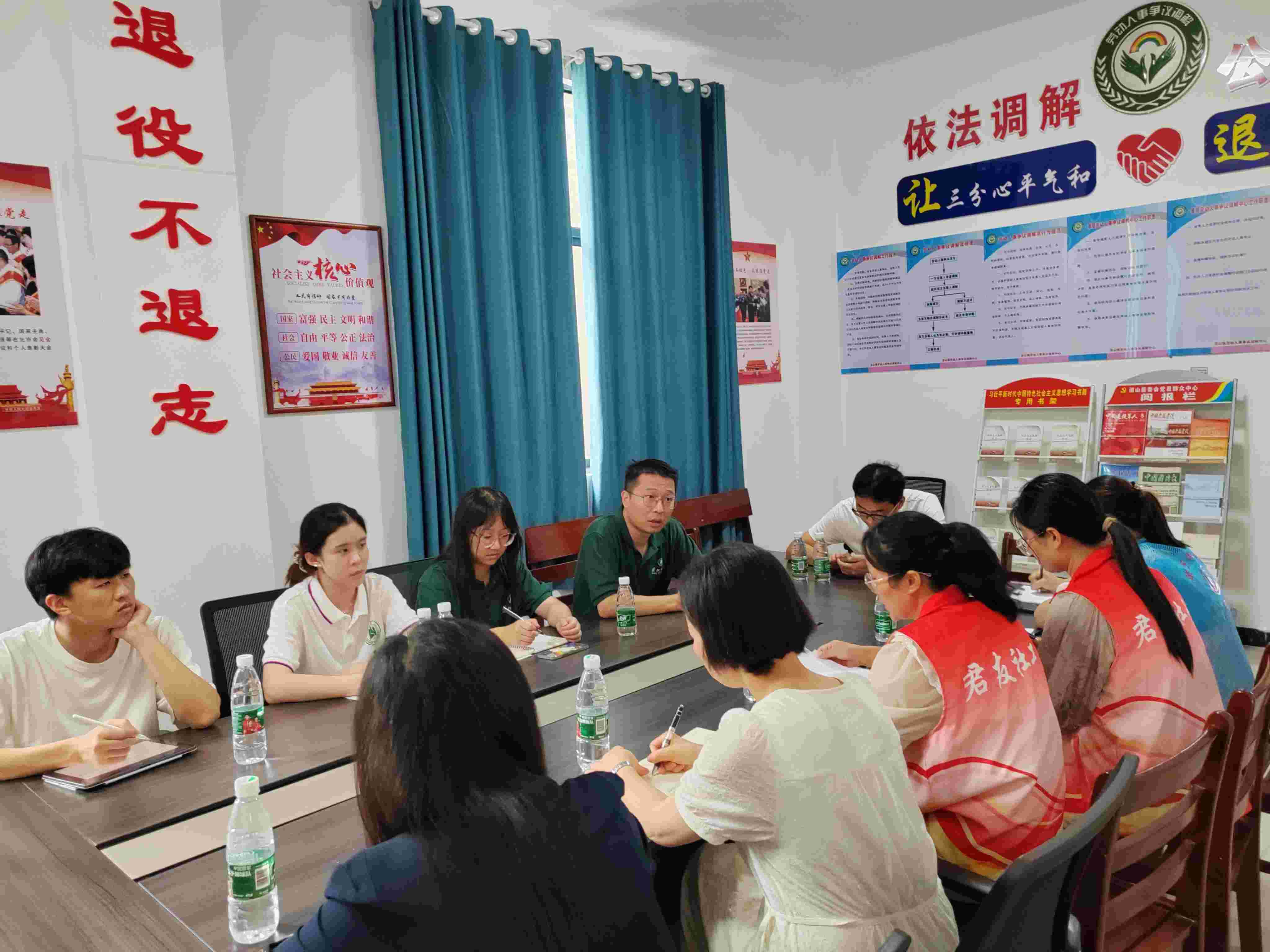 學(xué)習(xí)“鄂州樣本”,在“巧巧工作室”中摸索老人需求7月11日上午,團(tuán)隊(duì)準(zhǔn)時(shí)抵達(dá)鄂州市梁子湖區(qū)東溝鎮(zhèn)茅圻村,相關(guān)工作人員熱情迎接來訪師生,并組織相關(guān)會(huì)議進(jìn)行工作對(duì)接。隨后,一行人對(duì)當(dāng)?shù)刂那汕苫鶎由鐣?huì)治理工作室進(jìn)行了全面參訪。