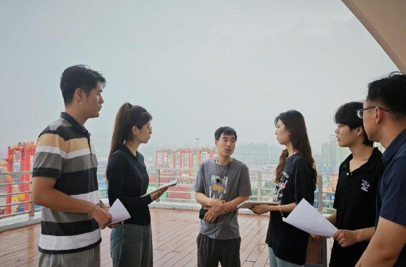隨后,實踐團隊登上展覽館露臺,俯瞰港口布局及貨物裝卸過程。據工作人員介紹,日照港正在加快結構調整、轉型升級,通過充分地利用岸線資源,優化港口功能,滿足腹地產業的需求。實踐團隊結合所見所聞,積極分享對綠色港口建設的見解與感悟,并呼吁社會各界關注和支持綠色港口事業的發展。