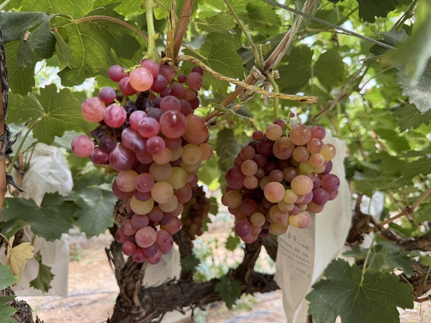 圖為當(dāng)?shù)靥厣笈镏猩L的葡萄