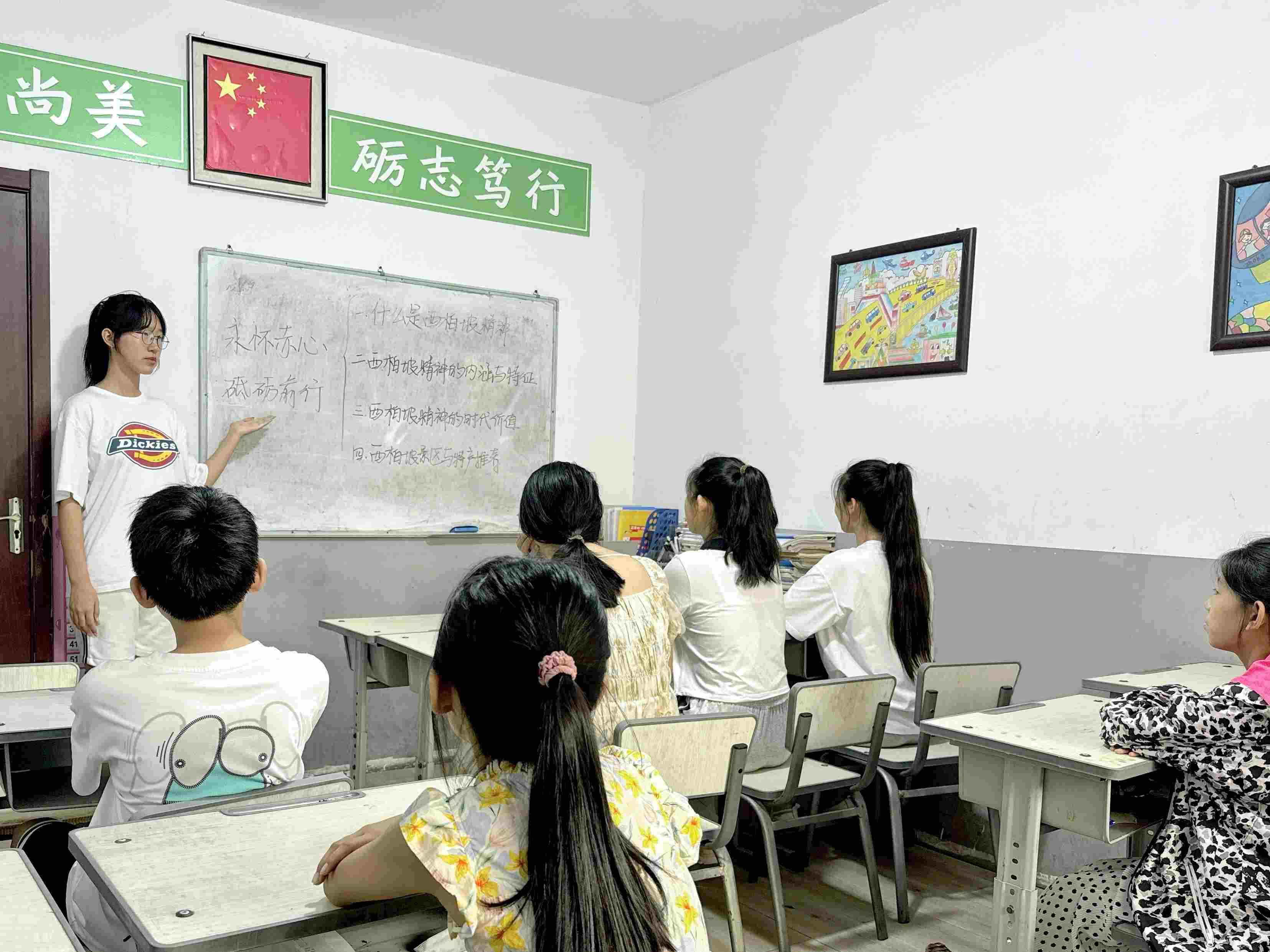 宣講團(tuán)成員首先以西柏坡自然景觀、特色產(chǎn)物為切入點(diǎn),通過展示圖片、播放視頻、闡述案例積極引導(dǎo)動(dòng)員學(xué)生、居民學(xué)習(xí)西柏坡文化,弘揚(yáng)西柏坡精神并深刻領(lǐng)悟其歷史與時(shí)代價(jià)值。宣講隊(duì)員還通過講述紅色故事與知識(shí)問答環(huán)節(jié)加深鞏固學(xué)生對(duì)西柏坡精神的理解,并呼吁青年堅(jiān)定理想信念,樹立正確觀念,投身于國家和社會(huì)發(fā)展建設(shè)之中。在宣講過程中,為調(diào)動(dòng)同學(xué)們的積極性,宣講團(tuán)還精心策劃了“傳承紅色火種,點(diǎn)亮使命之光”系列宣傳活動(dòng),并組織了同學(xué)們開展“紅色書籍讀書會(huì)”、“向英雄致敬”、“我是小小推介官”等活動(dòng),在傳承與弘揚(yáng)紅色精神的同時(shí),依托西柏坡資源助力鄉(xiāng)村發(fā)展宣傳當(dāng)?shù)氐淖匀痪坝^、特色產(chǎn)物等推動(dòng)當(dāng)?shù)亟?jīng)濟(jì)發(fā)展,助力鄉(xiāng)村振興。