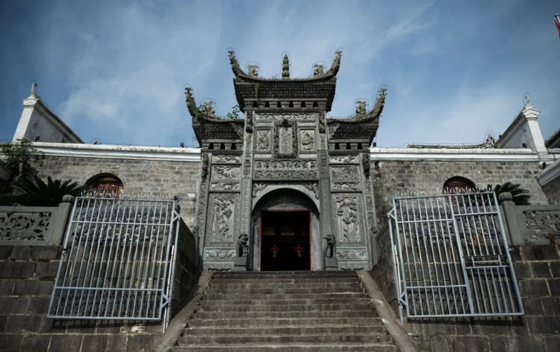 7月13日上午,調(diào)研支隊(duì)到達(dá)內(nèi)陸最大的媽祖廟——芷江天后宮對(duì)其門樓進(jìn)行觀摩。門樓兩側(cè)雄獅蹲距,石鼓對(duì)峙;頂蓋斗拱飛櫞,十二金鯉咬脊,葫蘆攢尖;左右青石鋪地,并圍繞菱龍、走獸紋樣的青石欄桿。95幅青石浮雕,或魚龍鳳獅、或花草鳥蟲、或神仙鬼神,內(nèi)容豐富,栩栩如生。天后宮門樓的元素眾多,但并不給人擁擠的感覺(jué),反而華麗中彰顯著濃厚的文化,畫面中呈現(xiàn)著繁榮的盛世。