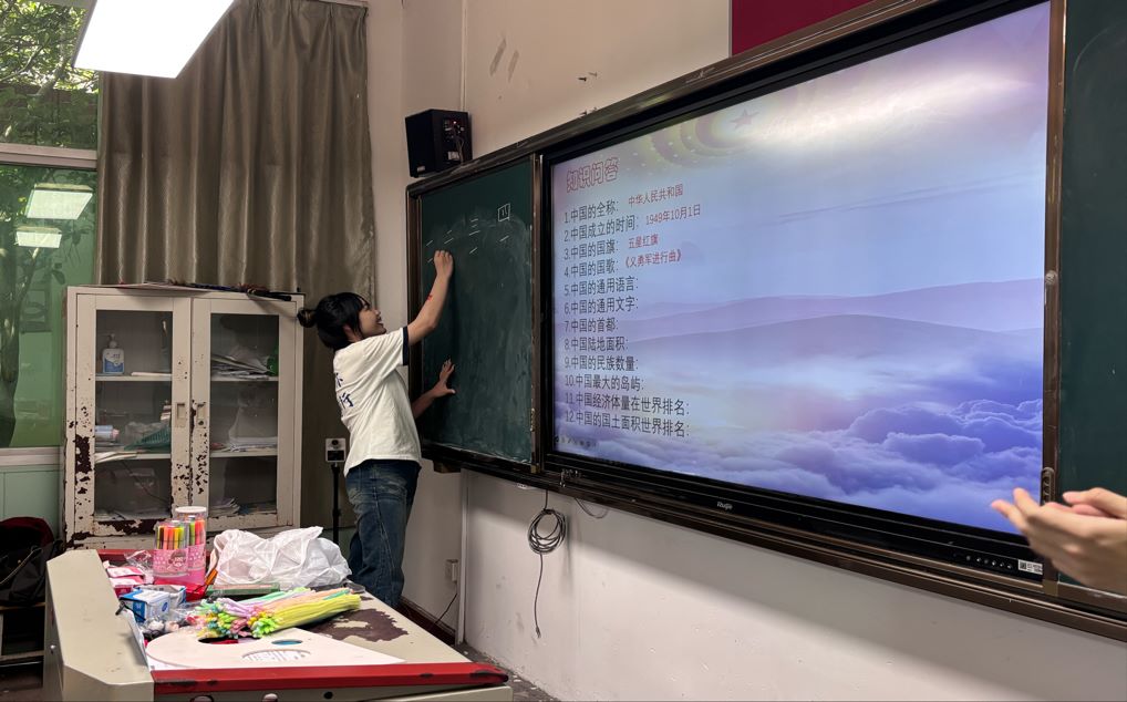 活動當(dāng)天,電氣一班的團(tuán)員們?yōu)榭_呅W(xué)的孩子們帶來了一系列精心策劃的互動環(huán)節(jié)。在愛國教育的學(xué)習(xí)與討論中,孩子們積極發(fā)言,展現(xiàn)出了對祖國歷史文化的濃厚興趣。緊接著的愛國知識問答競賽,更是將現(xiàn)場氣氛推向高潮。