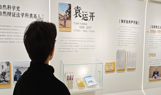 圖為實踐團成員丁坤參觀袁運開事跡。 王秋喆供圖