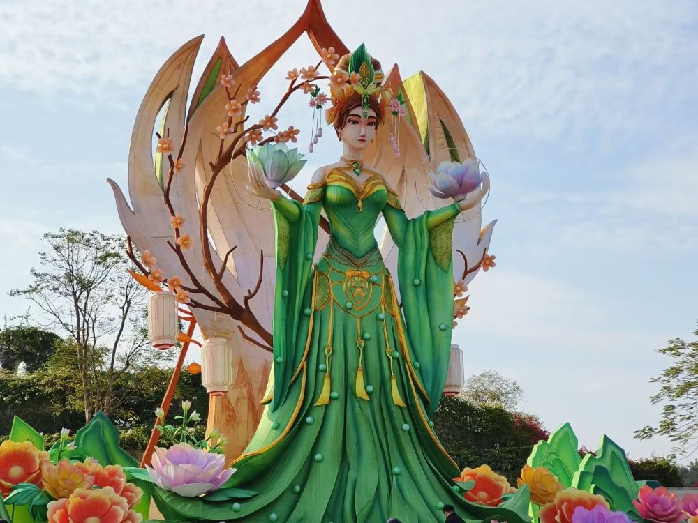 圖為青秀山風(fēng)景區(qū)花燈展中的中心燈組“青秀女神” 唐一文 攝