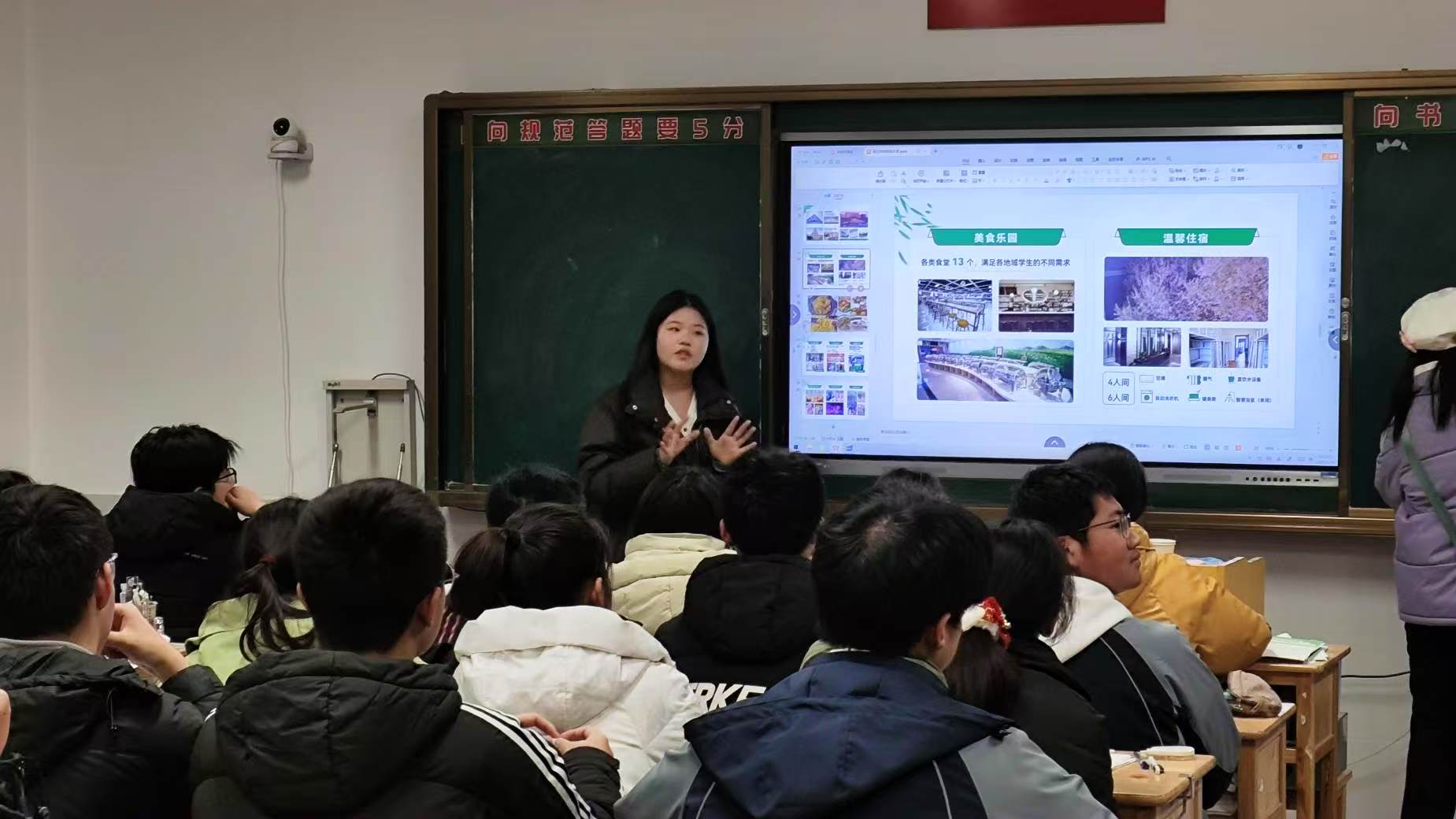 1月19日,隊伍成員進行走班宣講。他們以自身經歷為切入點,生動介紹了西農的文化底蘊與科研實力。從1934年建校至今,西農始終以“支撐干旱半干旱地區現代農業發展”為使命,培育了如“碧瑪1號”小麥、世界首批克隆羊等重大科研成果,展現了農業科技的魅力。宣講中,學子們還通過視頻展示了校園風貌,包括國家4A級景區博覽園、現代化圖書館及豐富的社團活動,激發學弟學妹們對大學生活的向往。在互動環節,圍繞“專業選擇”“學習壓力調節”等話題,他們結合自身經驗提出建議,強調“興趣與家國情懷結合”的重要性。”