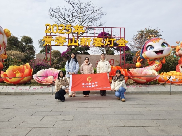 圖為團隊成員在青秀山風景區新春燈會合影。唐一文 供圖