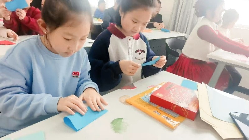 隨后,做花燈活動將節日的歡樂氛圍推向了高潮。張文杰同學早早備好了彩紙、剪刀、膠水等材料,耐心地指導孩子們制作花燈。孩子們圍坐在一起,眼神專注,小手忙碌。在大學生的幫助下,家長們也參與其中,大手小手共同協作。不一會兒,一盞盞形態各異、色彩絢麗的花燈便誕生了。有憨態可掬的紅燈籠,有造型精巧的荷花燈,還有充滿童趣的卡通剪紙。燈光透過彩紙,散發出柔和的光芒,映照著孩子們紅撲撲的臉蛋,仿佛點亮了他們心中的夢想。