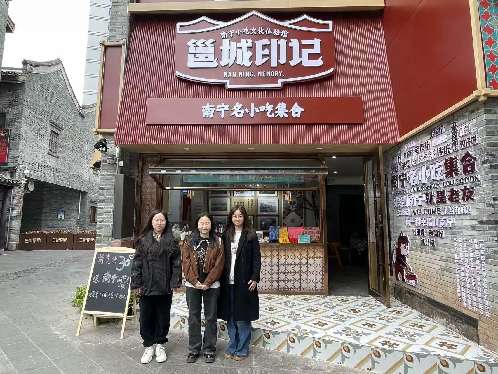 圖為團(tuán)隊(duì)成員在壯錦主題店前合照。陳逸供圖