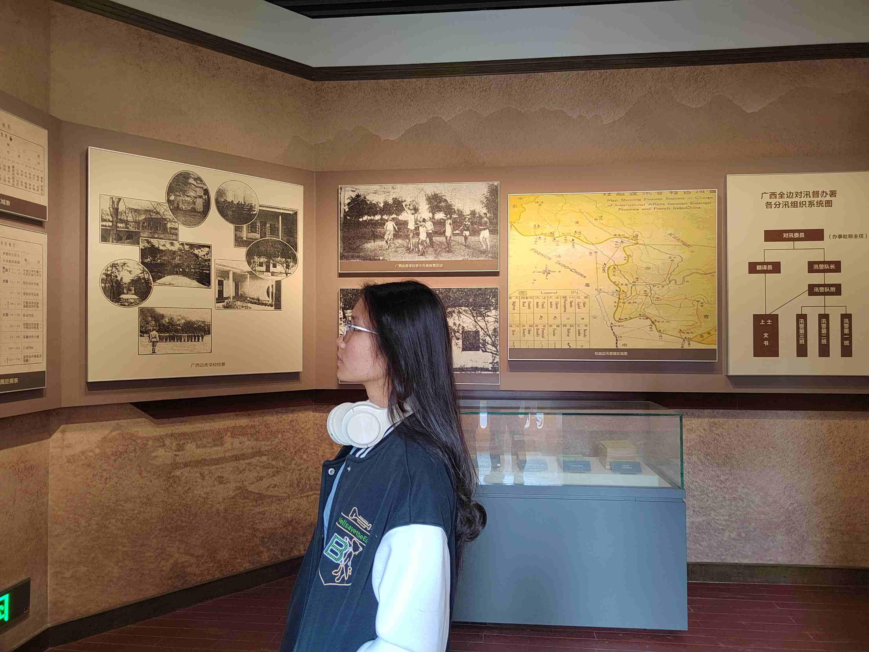 在友誼關的各大展廳里,珍藏的一幅幅珍貴的歷史照片、一件件真實的歷史遺物、一篇篇詳實的文字報道,都生動再現了友誼關的“前世”,語言景觀實踐隊隊員們通過參觀了友誼關法式樓和友誼關關樓展廳,了解了友誼關的歷史歷程,探索了在友誼關發生過的邊關記憶,體會了友誼關所蘊含的深厚愛國情感。友誼關及其所蘊含精神文化作為憑祥市城市文明的重要組成部分是邊疆愛國主義教育不可缺少的內容。