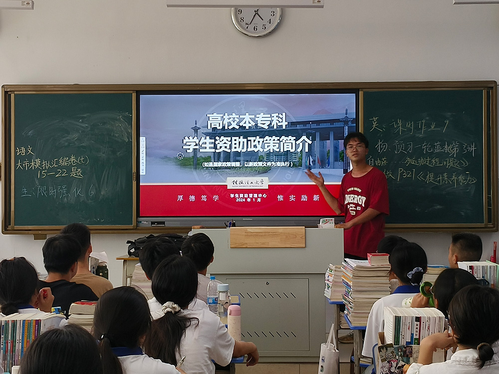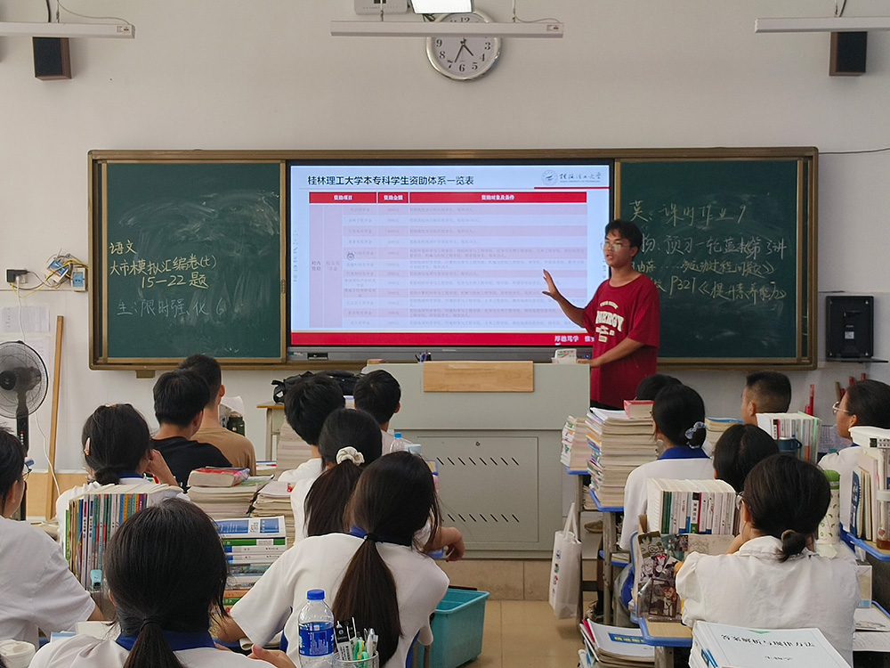 于2024年7月12日,為更好的宣傳國家相關的資助政策,來到貴港桂平市第五中學用現身說法,向他們介紹我們在國家資助政策幫助下如何安心學習、健康成長,以此來掃除他們經濟上的顧慮,更好的享受教育權利和享受更高的教育水平,獲得更大機會成才。