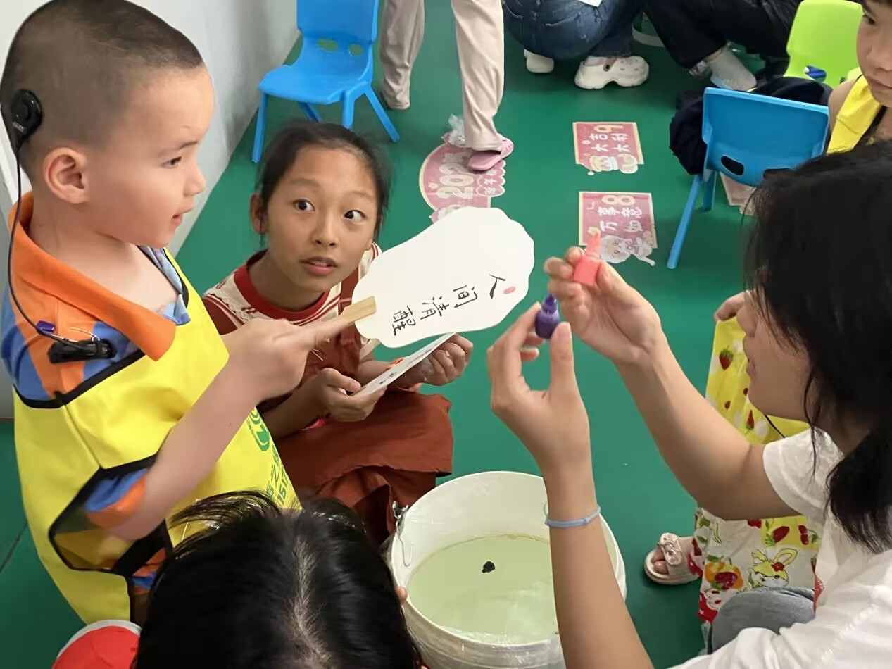 為了讓孩子們更加直觀地感受漆扇的魅力,志愿者們特意安排了制作漆扇的體驗環節。在志愿者的耐心指導下,孩子們小心翼翼地挑選著材料,認真地涂抹著漆料,從調色、勾線到上漆,每一筆都凝聚著他們對美的追求與對非遺文化的尊重,歡聲笑語回蕩在現場。此刻,漆扇不僅是藝術的載體,更成為了連接彼此心靈的紐帶,讓溫暖如潺潺溪流,在彼此心間流淌傳遞。