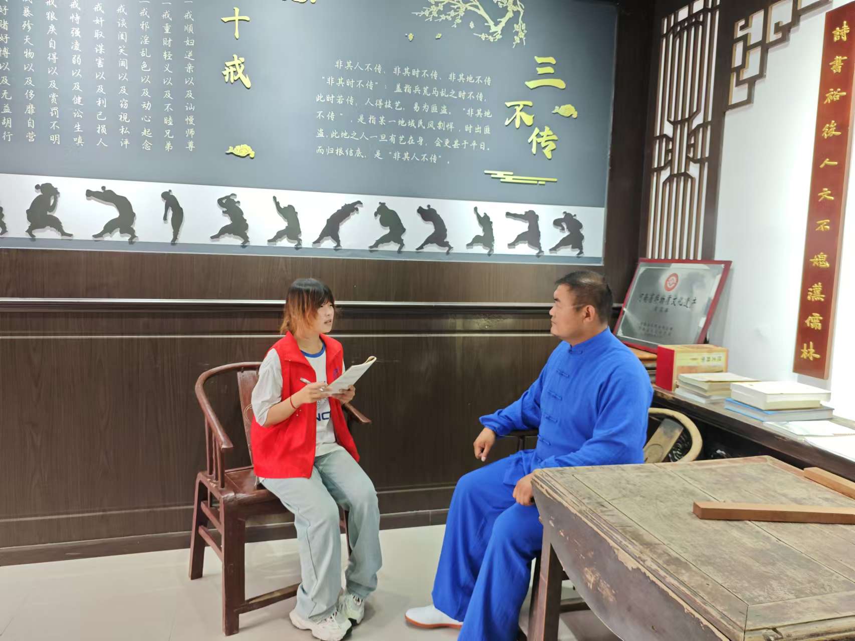 實(shí)踐團(tuán)隨后前往萇家拳博物館,第八代傳承人萇世昌詳細(xì)闡述了萇家拳的起源、發(fā)展歷程及其獨(dú)特的文化內(nèi)涵,實(shí)踐團(tuán)真切感受萇氏武技功法、套路、拳理及其現(xiàn)代價(jià)值。