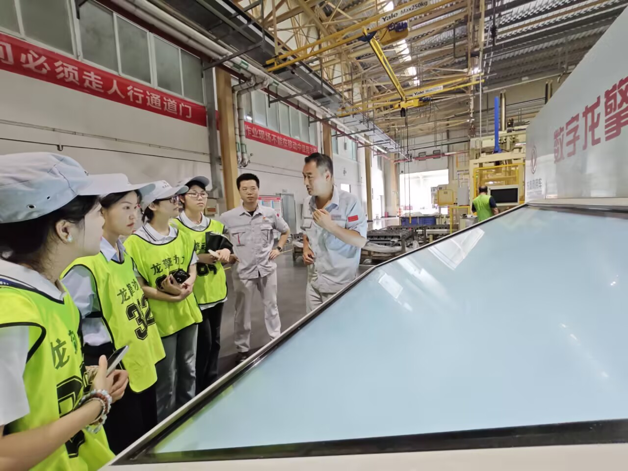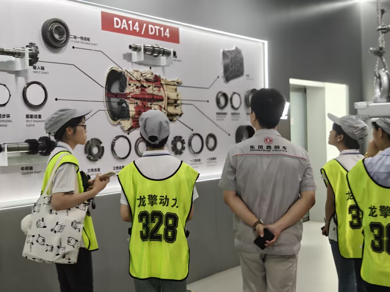 6月30日上午,實踐團首站來到東風龍擎動力有限公司。在企業(yè)歷史展廳,一張張泛黃的老照片記錄著企業(yè)從傳統(tǒng)制造向智能制造的轉型歷程。技術負責人張工指著2024年“安全生產與低碳環(huán)保先進單位”的獎牌介紹道:“這是我們踐行ESG理念的最好證明。”在核心部件展區(qū),高壓共軌系統(tǒng)等“汽車心臟”的自主研發(fā)成果讓同學們贊嘆不已。