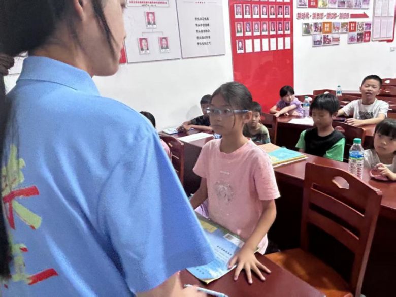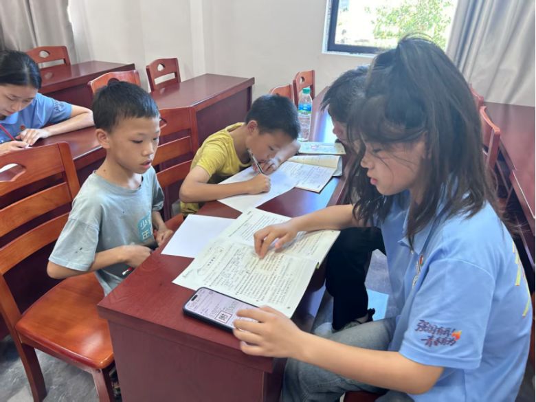 針對村中留守兒童因父母外出務工導致的課業(yè)輔導資源匱乏問題,實踐隊同步開設“課業(yè)加油站”。隊員們化身“輔導老師”,耐心細致地“一對一”為孩子們答疑解惑。從數(shù)學題演算到作文構思,從英語單詞背誦到科學實驗指導,隊員們認真檢查作業(yè),細致講解問題,尤其對基礎薄弱的孩子更是耐心反復指導,幫助他們鞏固知識點。在輔導過程中,隊員們不僅關注學習成果,更注重培養(yǎng)學習方法與良好習慣,鼓勵孩子們樹立信心,勇敢面對學習挑戰(zhàn)。五年級學生李思雅欣喜地說:“哥哥姐姐講題特別清楚,暑假作業(yè)再也不怕‘卡殼’了!”這份兼具專業(yè)與溫情的陪伴,有效緩解了學業(yè)困難,更傳遞了社會對留守兒童的深切關懷,讓他們的成長之路不再孤單。