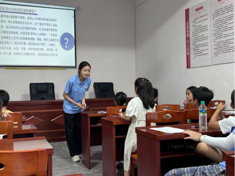 (圖為陳婧婷隊為鄉(xiāng)村兒童上防溺水課細節(jié)圖 饒晨攝)