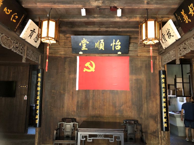 圖為孫曉梅故居中處于大堂中心的黨旗。王妍燦供圖
