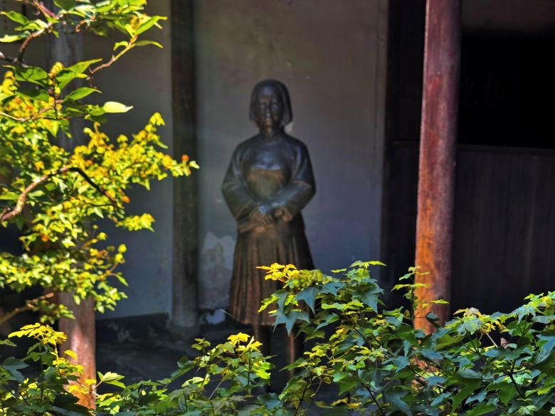 圖為孫曉梅故居中孫曉梅同志的雕塑。王妍燦供圖