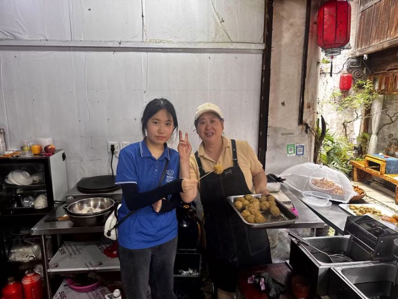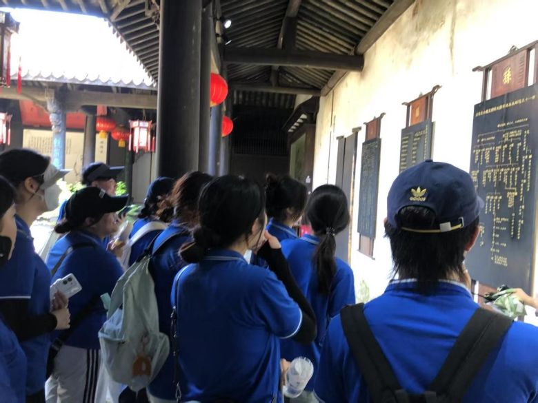 古鎮的魅力,也流淌在居民的生活氣息中。在莊嚴肅穆的孫氏宗祠“余慶堂”前,偶遇一位精神矍鑠的孫姓長者。看到年輕學子們對祠堂文化如此感興趣,老人家眼中閃爍著欣慰,他簡短而深情地提及,這里承載著孫氏子孫的精神根脈,那些高懸的“忠孝節義”、“詩禮傳家”匾額,寄托著祖輩對后人的殷切期許。這份來自鄉土長者的樸素心聲,讓成員們對眼前的歷史建筑有了更深的溫度感。